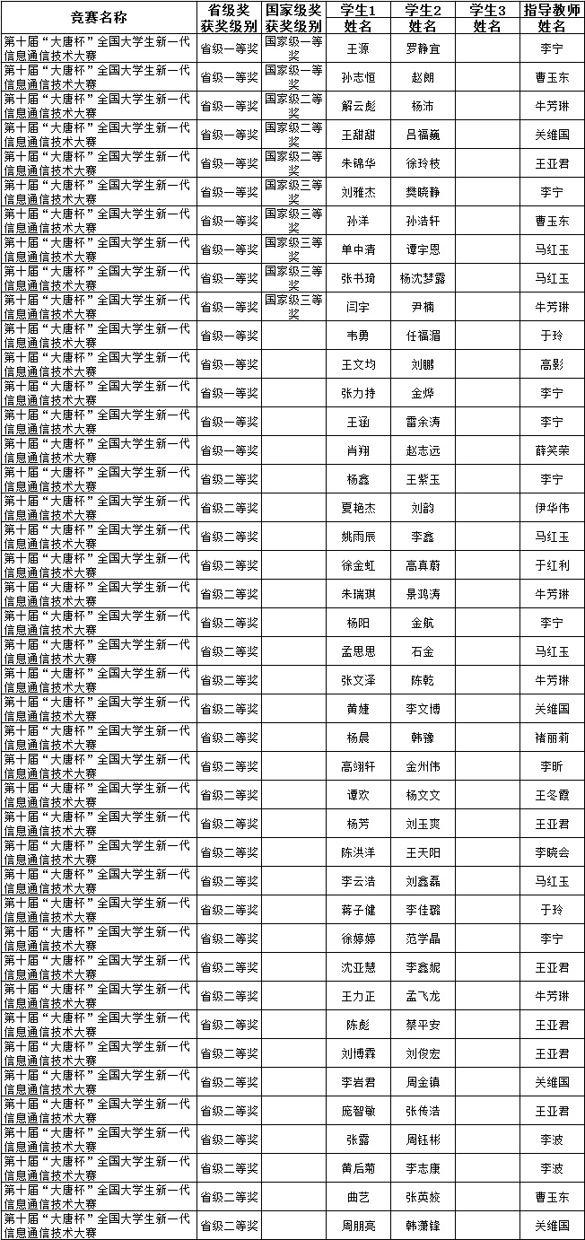 第十届“大唐杯”全国大学生新一代信息通信技术大赛获奖名单