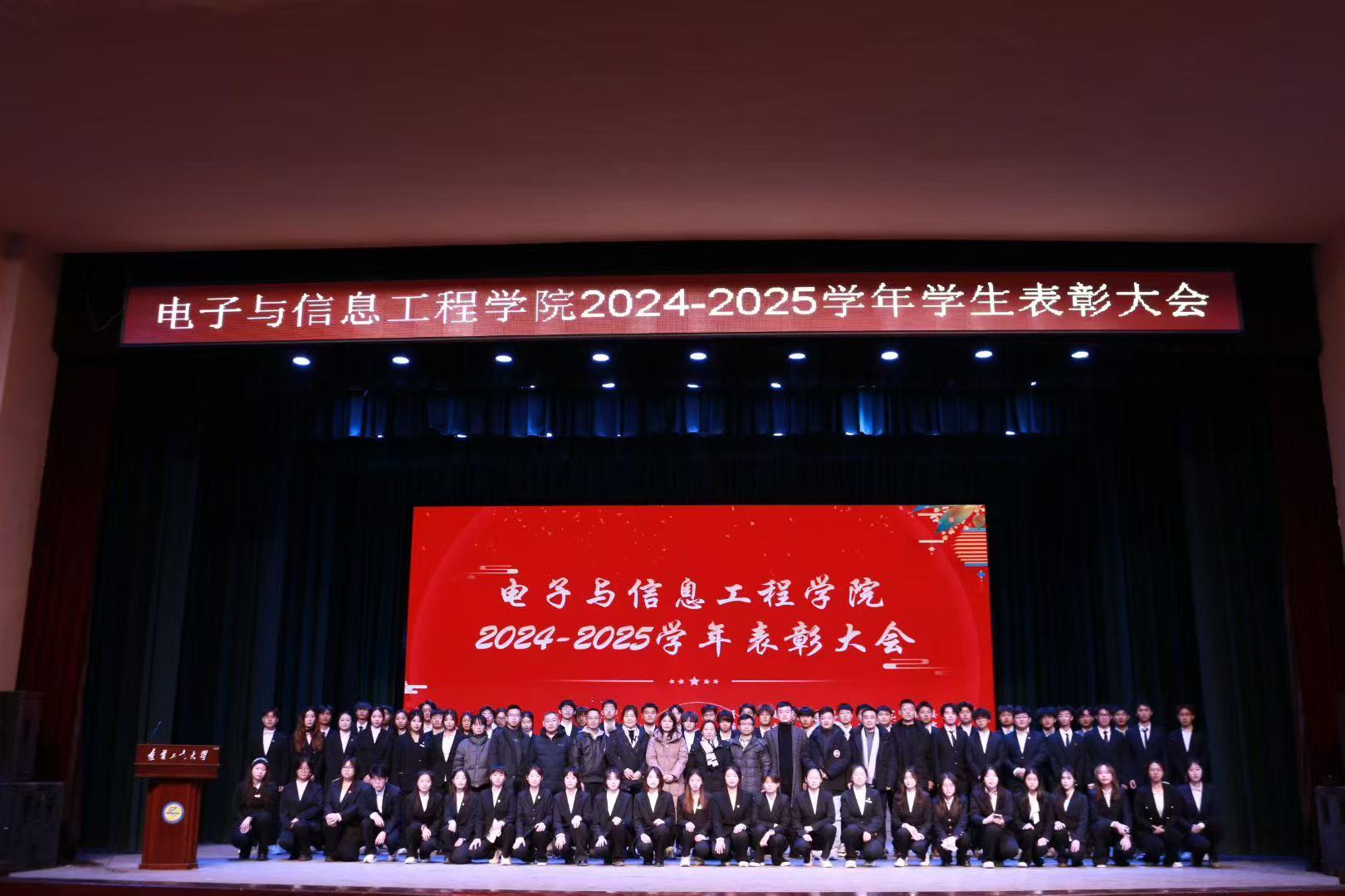 为表彰先进典型、树立学习榜样,进一步激励全体学生勤奋进取,12月10日,学院在礼堂举办2024-2025学年表彰大会。院长王亚君、党委书记杜君、副院长于玲、计算机科学与技术系主任李晗、通信工程系主任曹玉东、软件工程系副主任曹光辉、软件工程(中外合作办学)专业负责人俞菲及各年级辅导员出席大会,全体获奖学生及各班级学生代表参会,共同见证荣誉时刻。